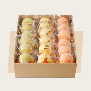 Orange Steam Cake (10pcs), Marble Steam Cake (10pcs), Strawberry Steam Cake (10pcs)