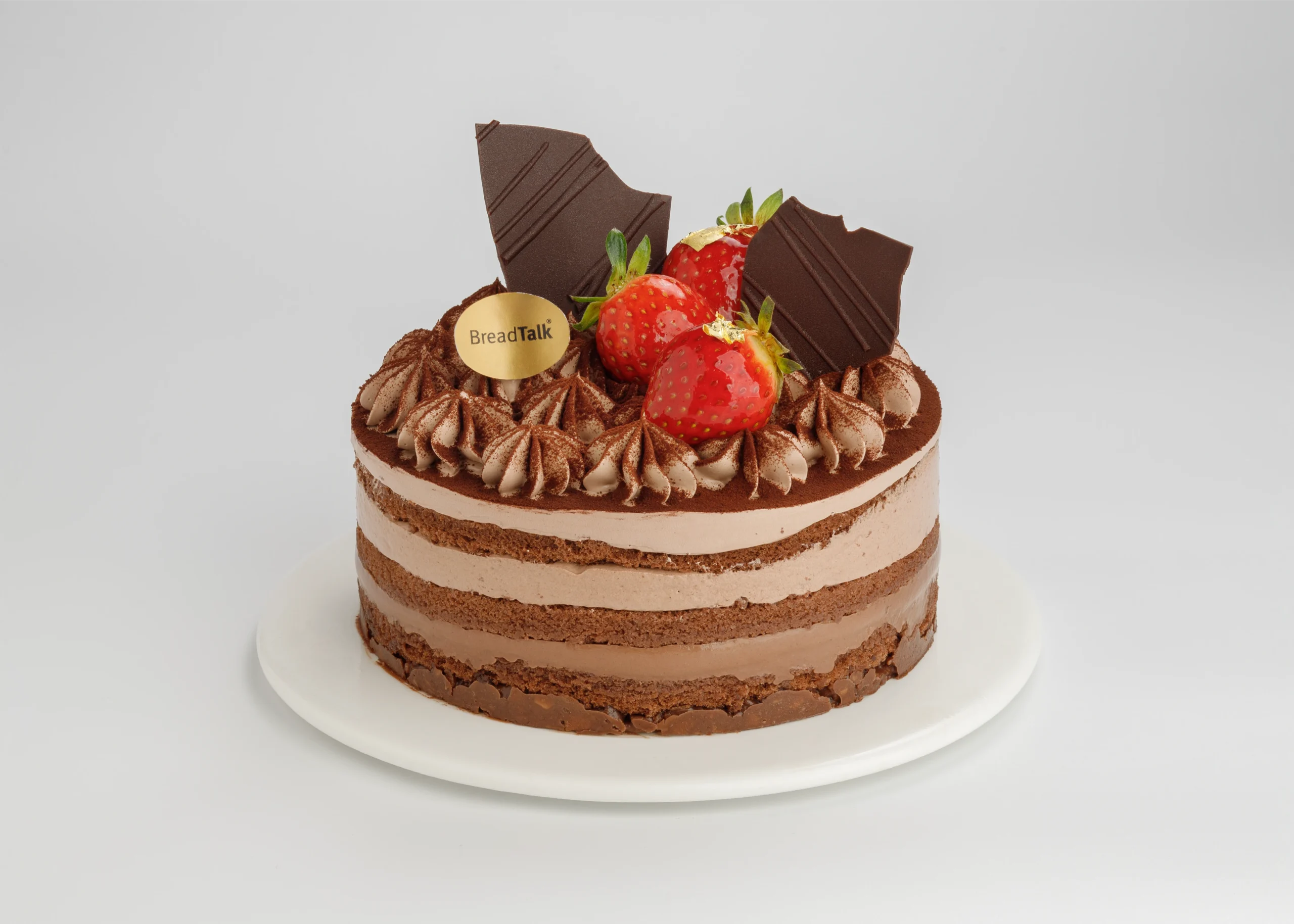 Royaltine Base, Chocolate Hazelnut Chocolate Topping Cream, Fresh Strawberry, Cocoa Powder, Dark Chocolate, Gold Leaf