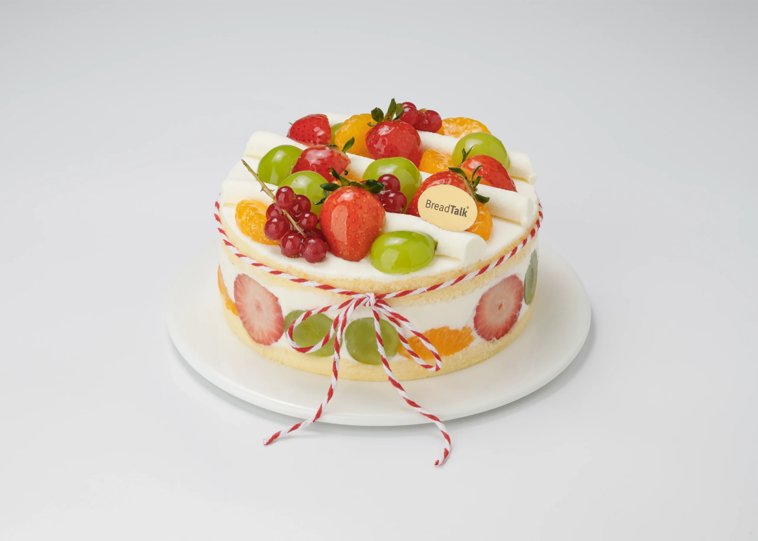 Vanilla Chiffon, Fresh Strawberry, Fresh Freen Grapes, Mandarin Orange, Yogurt Mousse, Vanilla White Chocolate, Fresh Red Currants, Snow Powder